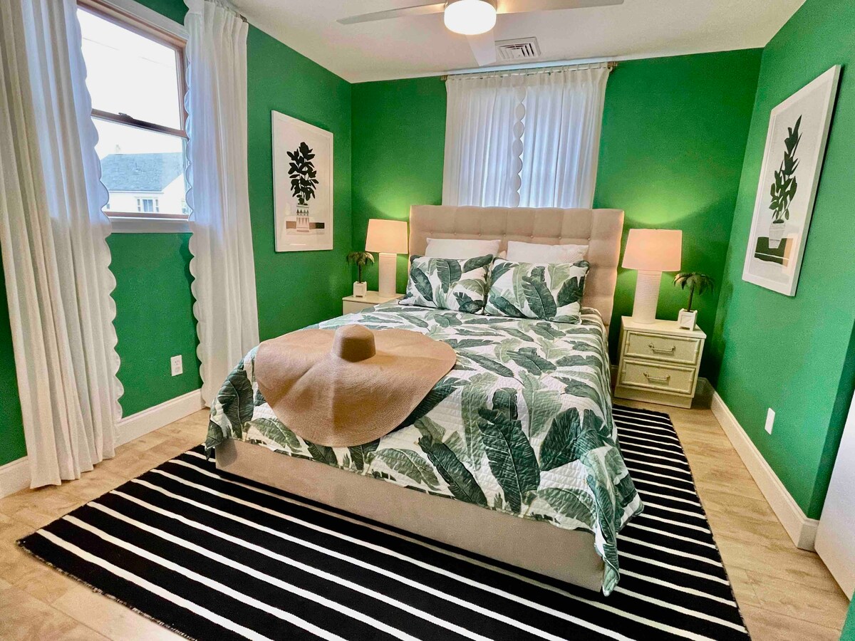 Escapade élégante, romantique et confortable ! À 2,5 pâtés de maisons de magnifiques couchers de soleil sur une plage isolée de la baie ! Draps, serviettes et serviettes de plage turques fournies. Cette maison pittoresque et excentrique est l'endroit idéal pour un répit pour adultes (uniquement les nourrissons et les enfants de 5 ans et plus qui ne rampent pas). Fourni avec tout ce dont vous avez besoin : jacuzzi, foyer au gaz, fournitures de plage, vélos, chariot de bar, douche extérieure saisonnière, 2 braseros, table de pique-nique, moustiquaire dans le porche avec table à manger et coin salon ! Bar de plage amusant et saisonnier (Harpons) à quelques minutes à pied !