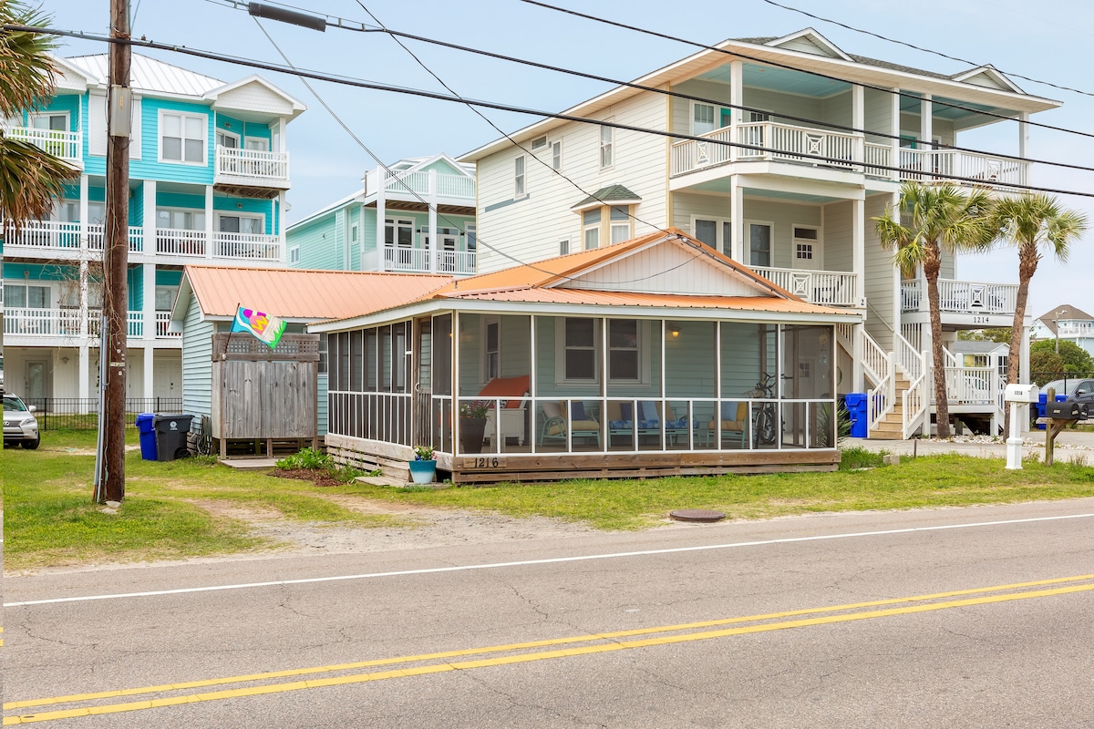 L'emplacement, l'emplacement, l'emplacement !!! Ce chalet d'hôtes entièrement rénové d'une chambre et d'une salle de bain est situé au cœur de Carolina Beach. À seulement 2 pâtés de maisons de la plage (avec accès public), à distance de marche de nombreux restaurants, bars et de la célèbre promenade, vous n'aurez pas besoin de prendre votre voiture et de payer pour vous garer une fois que vous serez ici. Tout ce dont vous avez besoin pour faire de vos vacances l'escapade parfaite est à portée de main.