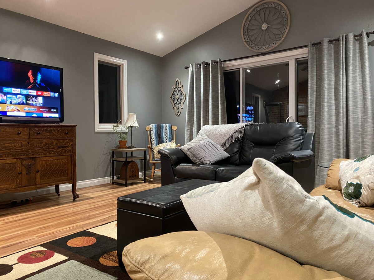 We hope you enjoy your stay in our newly renovated private suite. Thoughtfully designed, it offers everything needed for a perfect getaway or staycation in Guelph. Centrally located just minutes from downtown, shops, restaurants, trails, parks, and more. If you'd prefer to relax on the property, cozy up by the backyard fire pit, play outdoor games, or lounge in the sun with a good book. The suite includes high-speed Wi-Fi, a full kitchen, and free parking to make your stay even more comfortable.