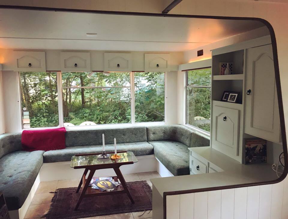 Caravane joliment meublée avec véranda en bois et canopée, canapé salon. La véranda couverte fournit de l'ombre et rend l'espace couvert presque 2 fois plus grand. Il y a deux chambres : 1 grand lit double, l'autre un lit superposé de taille normale. En outre, une cuisine bien équipée avec cuisinière à gaz à 4 feux, cafetière, mousseur à lait, 2 alarmes incendie. La caravane est située dans un bel endroit, entourée de verdure et sans voisins immédiats. Toilettes et douche à proximité, à 10 mètres Remarque : parking gratuit