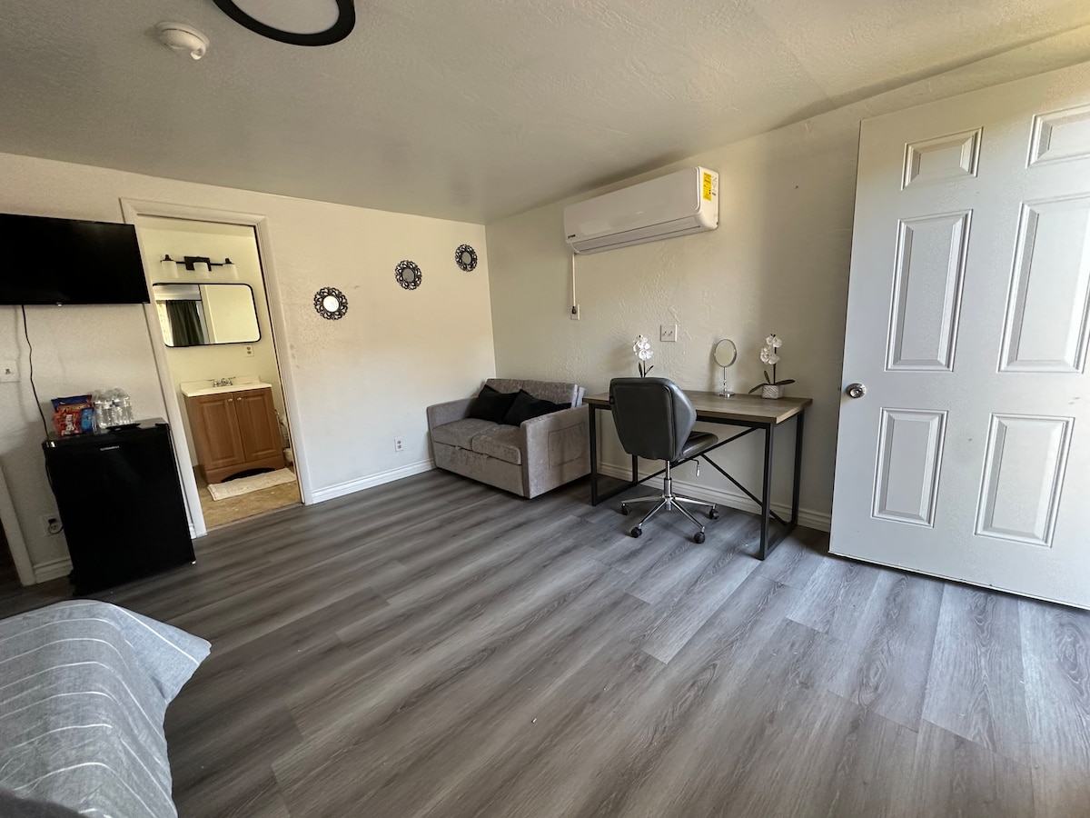 Bienvenue dans ce studio confortable à Las Vegas ! ! ! ! Ce studio est parfait pour se détendre et se reposer pendant vos vacances dans la ville. Vous disposerez de votre propre climatisation avec mode froid et chauffage et d'une télévision avec Roku et Disney+ Nous sommes à seulement 10 minutes du Las Vegas Strip. Vous pourrez rejoindre l'aéroport en 8 minutes. Arrondi par des centres commerciaux, des marchés, des banques, etc. Le studio dispose d'une entrée privée, d'une cuisine et d'une salle de bain. Seule la cour d'entrée est un espace commun où vous pouvez voir d'autres voyageurs. Définitivement, vous allez adorer