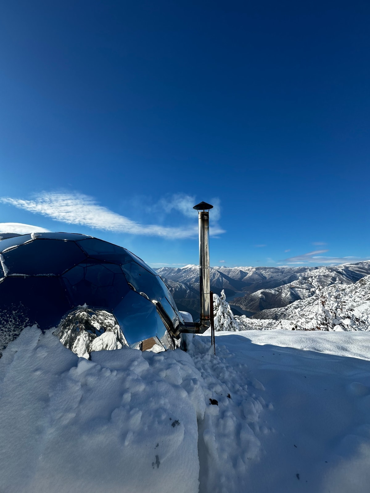 Bienvenue dans votre expérience ultime dans la nature sauvage ! Revenons aux bases... Les sens, la terre, le ciel, les étoiles. Le Naturel. Nous voulons partager avec vous un rêve, un frisson d'aventure, un abri confortable, niché au plus près des étoiles. Situé dans le parc national de Jasen, avec une vue imprenable sur le lac Kozjak, entouré de bois et de chevaux sauvages. Le design exceptionnel de l'igloo donne une atmosphère confortable et intime, alliant confort à la beauté naturelle du grand air.