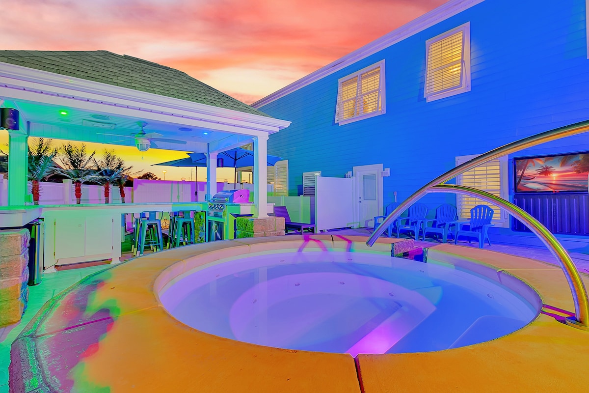 Nouvelle maison construite pour être la location de vacances ultime. À 2 m de la plage/3-4 min en voiturette ou 6 min en voiturette de golf. 2 maisons séparées dans l'une d'elles reliées par un moustiquaire dans un porche en forme de L avec une grande piscine chauffée de style complexe hôtelier extérieur/zone de jacuzzi comme un château. Voiturette de golf, VÉRITABLE arcade et une grande salle de cinéma NETFLIX avec un écran de 150"et des sièges de théâtre. 6 chambres/12 lits, 4,5 salles de bain avec 3 niveaux de vie. Grande cour clôturée avec table de billard/putt putt/ping pong et plus encore.