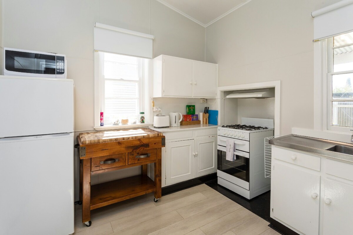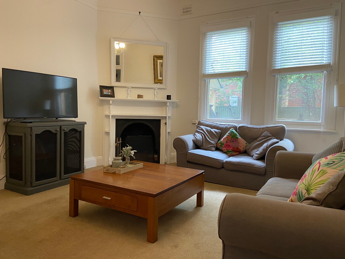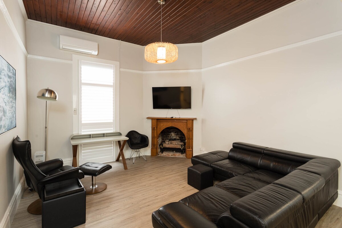 🏡 Très central – à 1 min à pied de la rue principale 🐶 Animaux bienvenus 🌼 Grande cour sécurisée avec barbecue et grand garage ☕️ Machine à café et à proximité de cafés locaux 🔥 Cheminée et carrelage chauffant Ce charmant logement de 3 chambres est situé au cœur de Wagga. Le logement a été récemment rénové et est meublé avec goût. Nous fournissons une literie et des serviettes de luxe, une connexion Wi-Fi haut débit gratuite, deux télévisions connectées + Netflix, un garage sécurisé et une grande cour arrière. Dans les 3 chambres, il y a un lit king size, un lit queen size et un lit double.