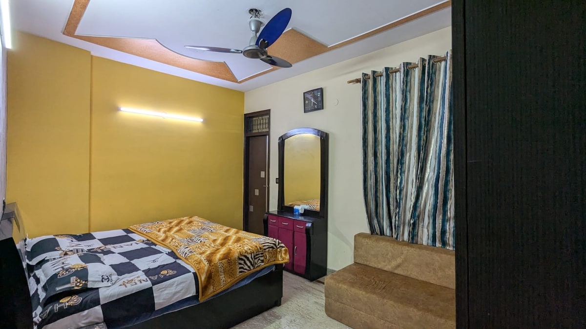Bienvenue dans notre chambre privée élégante située au centre avec une salle de bain attenante et une cuisine commune équipée de toutes les commodités modernes. Notre propriété est située à Ashram chowk, qui est un emplacement très pratique pour aller partout à Delhi et bien desservi par toutes sortes de transports en commun à seulement 2 min à pied de la station de métro Ashram. Ce logement est proche de destinations incontournables comme le marché de Khan, Lajpat Nagar, CP, India Gate, Bharat Mandpam, Dargah Hazrat Nizamuddin, etc.