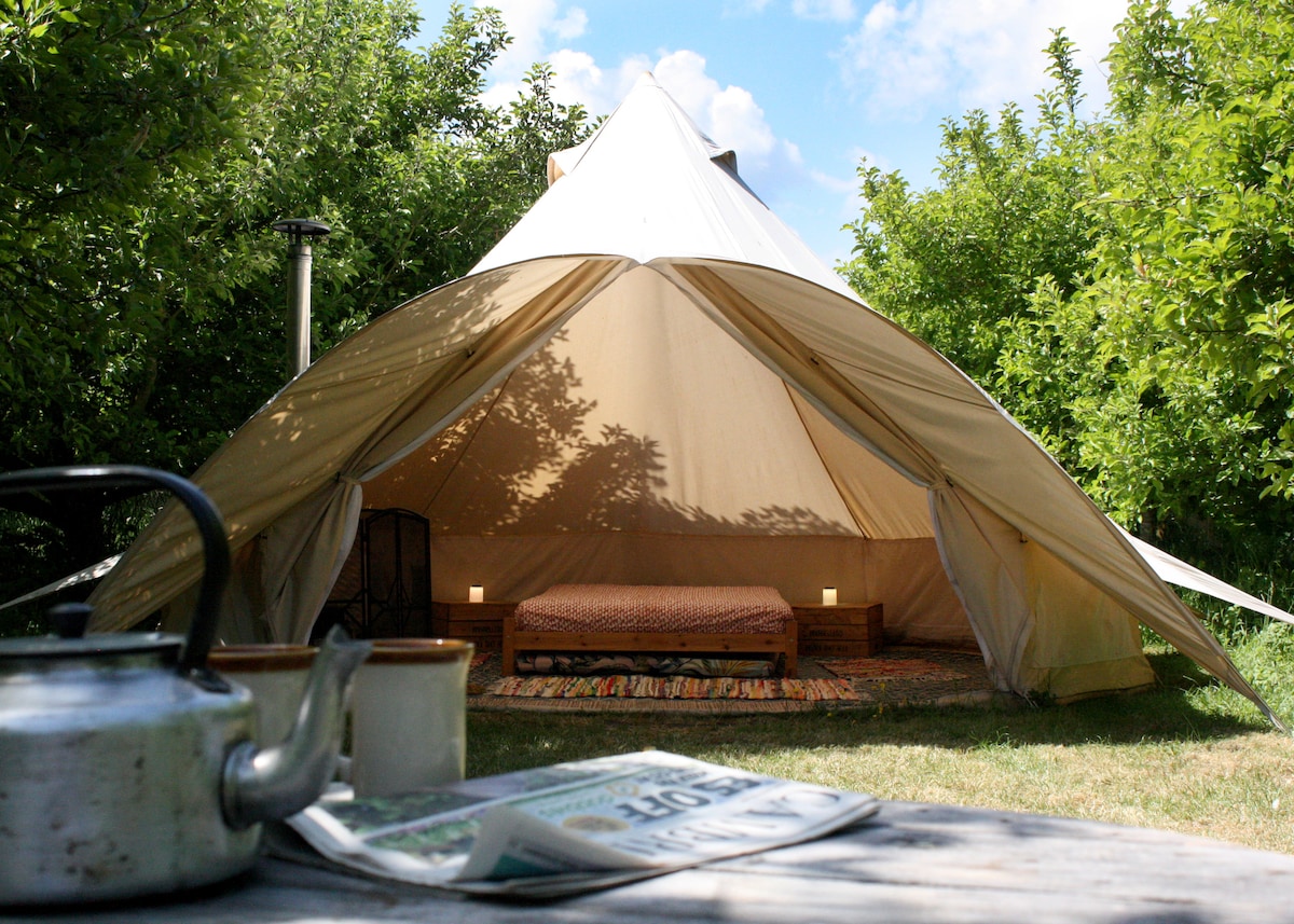 Tente cloche complètement isolée, située dans une grande zone clôturée du champ. Toutes les installations sanitaires et de cuisine sont privées et réservées à vous et votre famille. Pas de partage avec d'autres. Priory Barn est situé à quelques kilomètres de Chipping Norton près de Heythrop, nous sommes une petite exploitation nichée presque au fond de la vallée. Notre tente cloche est l'évasion parfaite vers la tranquillité et nous avons installé le camp pour que vous n'ayez pas à le faire, il suffit d'arriver et de vous détendre avec tout ce dont vous avez besoin.