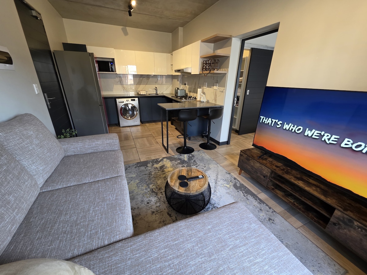 Bienvenue dans votre escapade sereine dans la banlieue aisée de Sandton, Byranston. Situé dans le complexe exclusif Akaru Bryanston à Sandton, cet élégant appartement d'une chambre avec balcon, lave-linge, lave-vaisselle et appareils de cuisine SMEG, salle de bain avec baignoire et douche, alimentation de secours offre un mélange parfait de design contemporain, de confort raffiné et d'hospitalité chaleureuse. Que vous soyez en voyage d'affaires ou en vacances, cet espace est soigneusement préparé pour améliorer votre séjour.