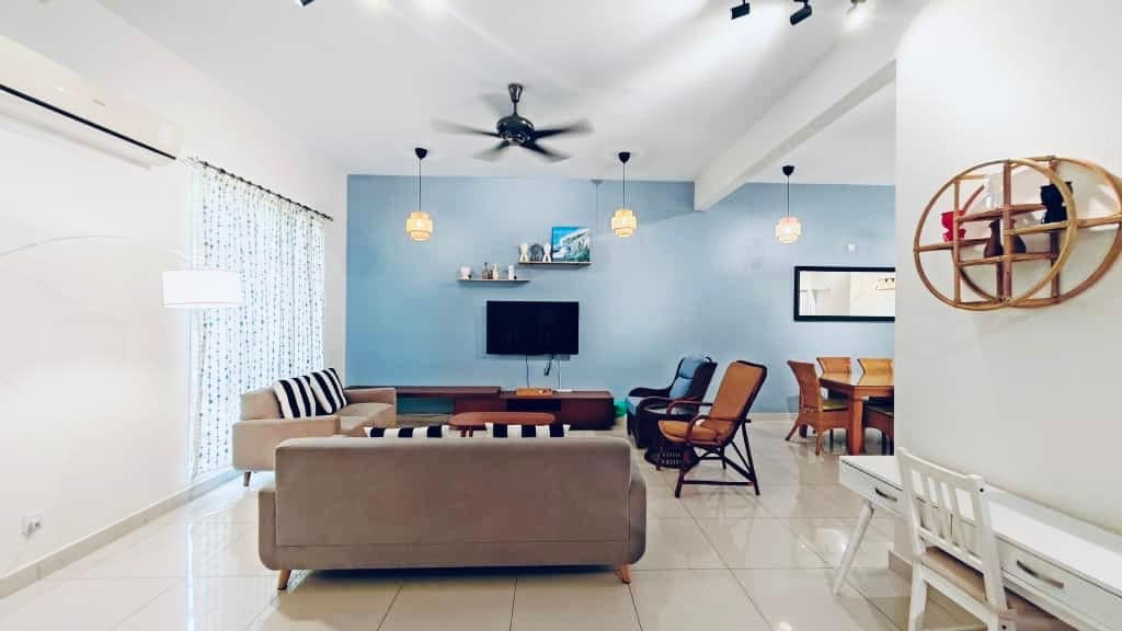Maison de vacances de style Nyonya récemment rénovée, située dans la rue la plus fréquentée de Penang, Gurney Drive ! Parfait pour une famille nombreuse ou un groupe d'amis et de voyageurs qui se réunissent pour une occasion spéciale. Ce séjour allie le style moderne et le confort des créatures afin que les invités se sentent comme chez eux. Maximiser l'espace et la lumière naturelle avec un salon ouvert, une salle à manger, un coin cuisine et un patio privé au barbecue. Profitez de la commodité et de la détente dans cet emplacement privilégié !
