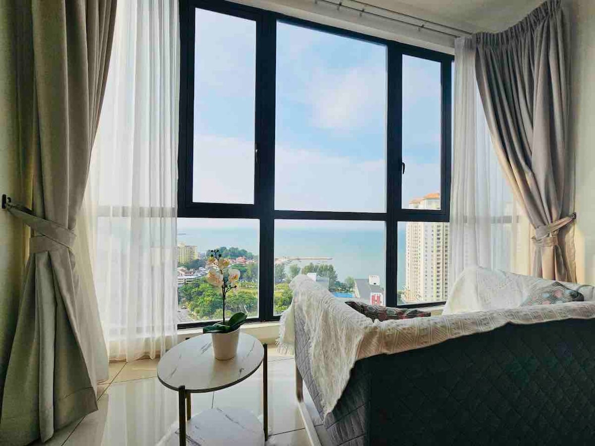 Suites maritimes par Comfy Penang ★ Coastline Seaview ★ en bord de mer en bord de mer ★ Duplex avec fenêtre vitrée haute du sol au plafond ★ Étage élevé ★ Vue imprenable sur Komtar ★ 5 étoiles Superhost Comfy Homestay Team ★ 5 à 10 minutes en voiture de la zone centrale du patrimoine de l'UNESCO ★ 24 heures 7-Eleven & Starbucks sous notre maison • 1000 pieds carrés • 1 parking • Wifi 300 Mbit/s • 30 restaurants, cafés, pubs, Starbucks, Coffee Bean, Subway, 7-Eleven sont en dessous de notre maison • Entièrement climatisé