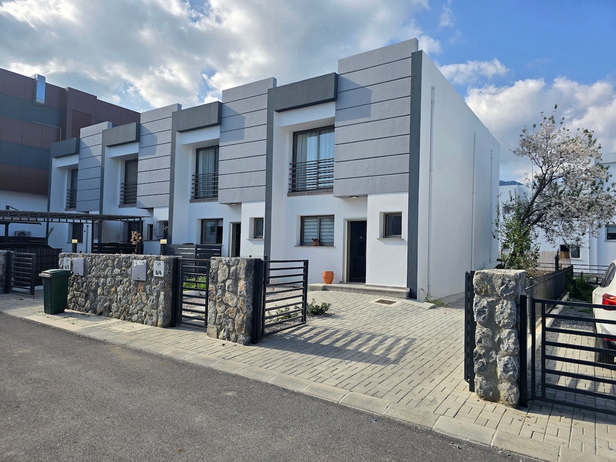 Cette petite maison confortable est à SEULEMENT QUELQUES SECONDES de LA PLAGE. Elle se trouve dans un quartier agréable et se situe entre le restaurant Ülfet et l'hôtel Kaya Palazzo. Elle est à seulement 10 minutes à pied de l'avenue Karaoglanoglu où vous pouvez prendre une navette qui fait le tour de Kyrenia. Elle dispose d'une arrière-cour couverte avec un barbecue et une grande table à manger idéale pour un couple, une petite famille ou pour un petit groupe d'amis. Entièrement meublée avec climatiseurs dans chaque chambre, deux salles de bains avec deux douches (une est attenante).