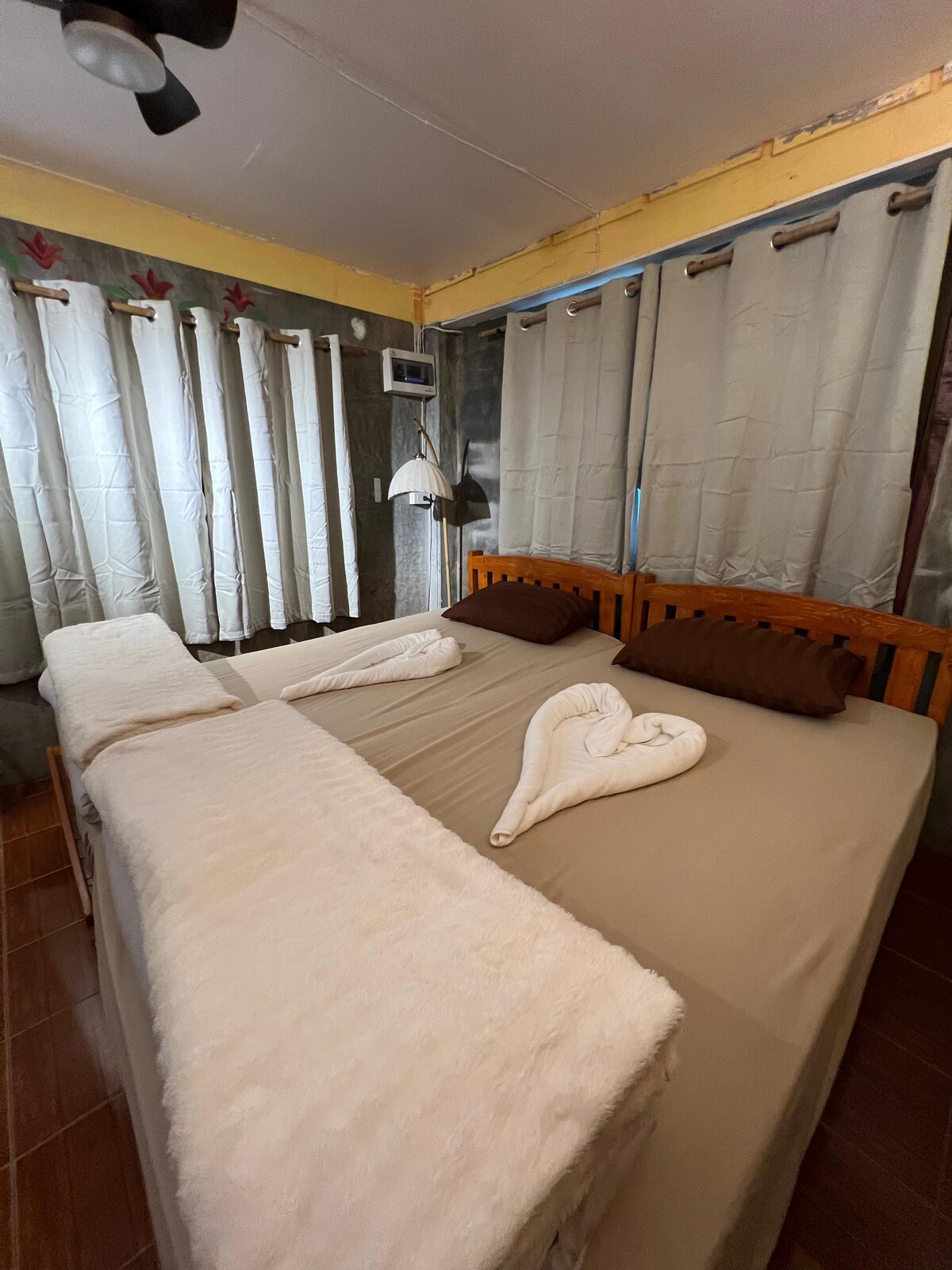 Promotion de bienvenue Chambre supplémentaire 2500 baht/jour (peut accueillir 2 personnes ou seule, c'est tout ce que vous en pensez) Chambre avec 2 chambres Type A : Maison en bois de plain-pied Type B : Maison en bois double avec service de ramassage et de dépôt à l'aéroport (payant) Petit déjeuner A : petit déjeuner anglais + thé, café, café, pain, fruits B : porridge thaïlandais, porridge, bouillie, bouilloire ou porridge + thé, café, pain, fruits, * cadeau dans la salle de boisson, 2 canettes de bière/jour, 2 canettes de bière/jour. Des en-cas sont disponibles, mais ils sont disponibles sur le marché frais. * Dîner surprise, 1 recette de charme gratuite (saison des fêtes, le prix peut être légèrement ajusté).