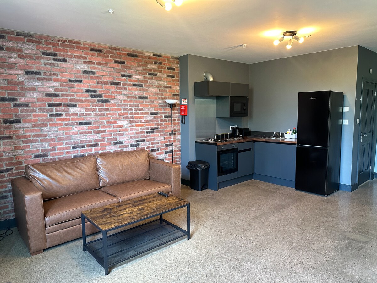 Profitez d'un logement élégant et central. Avec un éclairage doux et des accessoires confortables, cet appartement au dernier étage récemment rénové offre un hébergement de luxe pour deux personnes. La chambre confortable et accueillante dispose d'un somptueux lit Super King Size avec des draps de qualité supérieure. Il y a une connexion Wi-Fi et dans le salon une télévision connectée, il vous suffit d'apporter vos codes Netflix pour une nuit confortable sur le canapé. L'accès à l'appartement se fait directement depuis la rue pavée à deux pas de la place de la ville.