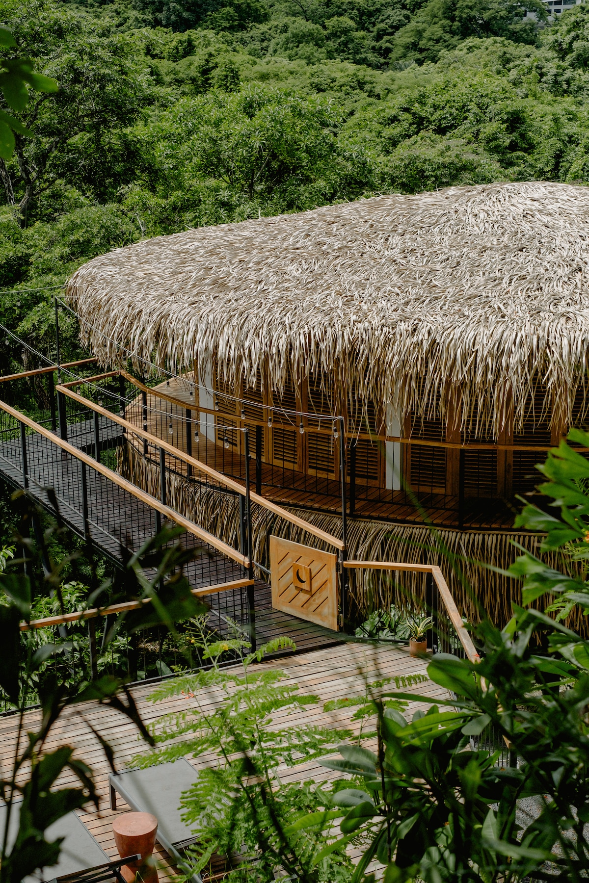 Nosara Treehouses propose deux cabanes de luxe conçues par un architecte et perchées parmi les cimes des arbres, accessibles par des passerelles surélevées, donnant un aperçu de l'expérience magique qui vous attend... Cette annonce concerne Moon. Profitez de la grande propriété de la jungle loin de l'agitation, mais à seulement quelques minutes à pied sur de beaux sentiers de la jungle de deux des plages les plus magnifiques du monde : Playa Pelada et Playa Guiones. Profitez des oiseaux et des singes tout autour de vous le jour et du ciel étoilé la nuit.