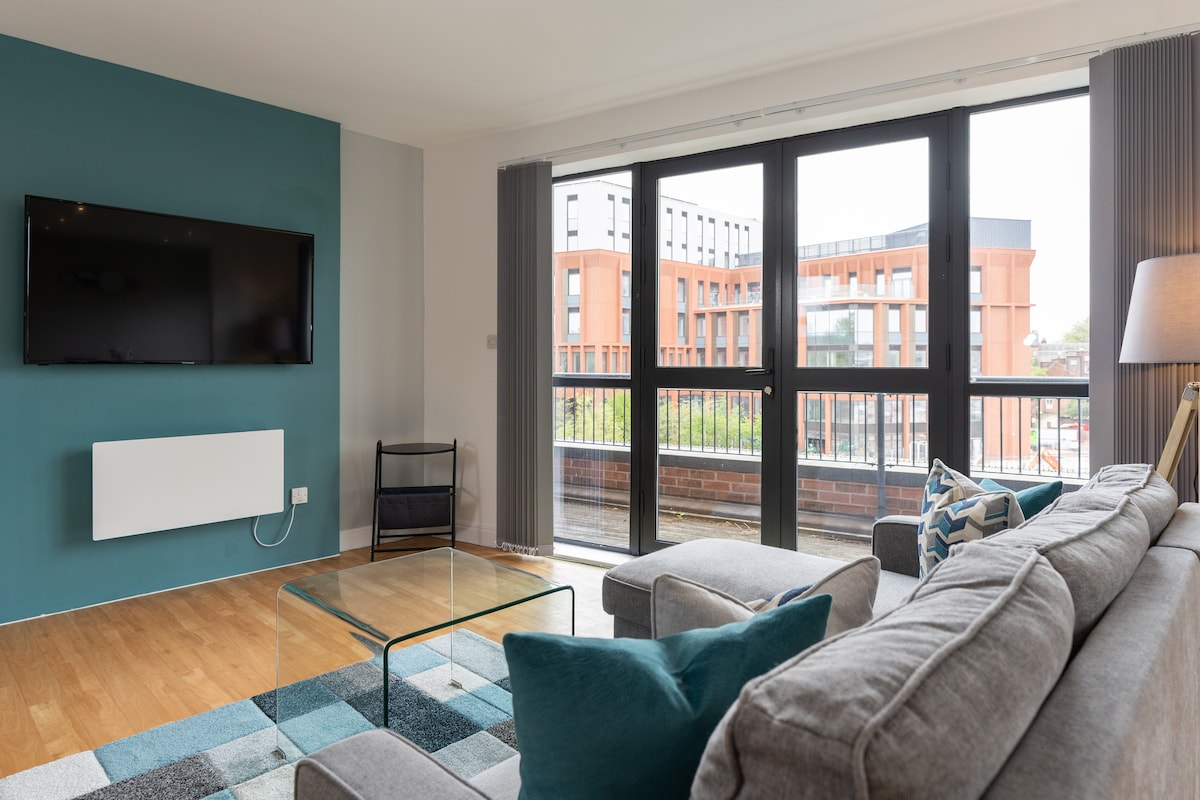 Cet appartement lumineux de 2 chambres et 2 salles de bain à Wilford offre aux voyageurs d'affaires et aux voyageurs de loisirs une base calme et moderne à quelques minutes seulement du centre de Nottingham. Profitez d'une connexion Wi-Fi rapide, d'un balcon privé, d'une télévision connectée, d'une cuisine entièrement équipée et d'un parking gratuit. À quelques pas de l'arrêt de tramway et accès facile au QMC, aux universités et à l'aéroport d'East Midlands. Hébergé par Stay Gateway — fièrement accrédité par Quality in Tourism pour des normes cohérentes et une expérience client exceptionnelle.