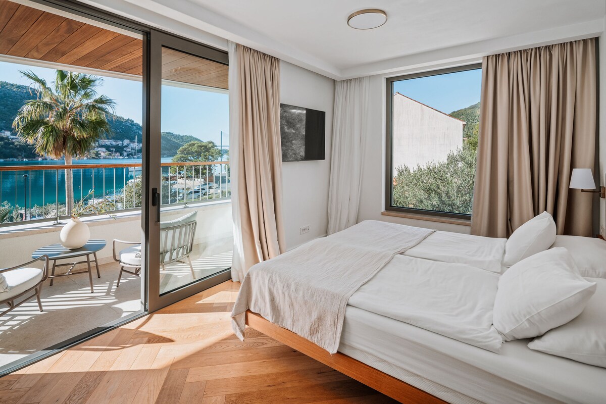 Appartement de 50 m² directement au bord de l'eau avec toutes les commodités pour un séjour confortable. Vue imprenable sur l'une des plus belles marinas de l'Adriatique. Quartier balnéaire paisible idéal pour la marche, le jogging et le vélo avec arrêt de bus pour la vieille ville (8 km - 20 min en bus) à quelques mètres. Si vous voulez profiter de Dubrovnik mais échapper à l'agitation de la vieille ville, c'est l'endroit idéal pour séjourner. Parking privé.