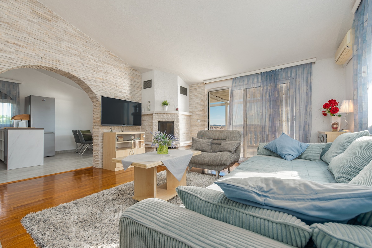 Je loue 2 appartements de style chic qui sont équipés d'une cuisine, d'une salle de bains, d'une télévision, d'une connexion Wi-Fi, d'air cond, etc. Chaque appartement se compose de 2 chambres : une chambre et un salon, une cuisine, une salle de bain et un balcon. Nous avons également un barbecue que vous pouvez utiliser pour faire un barbecue. Les appartements sont situés à Samorašnji,ils sont assez proches du centre-ville et de la plage. Nous avons également assez de place pour le stationnement. Pour toute information complémentaire, veuillez me contacter. Arrivée : à partir de 12h00, départ :avant 10h00.