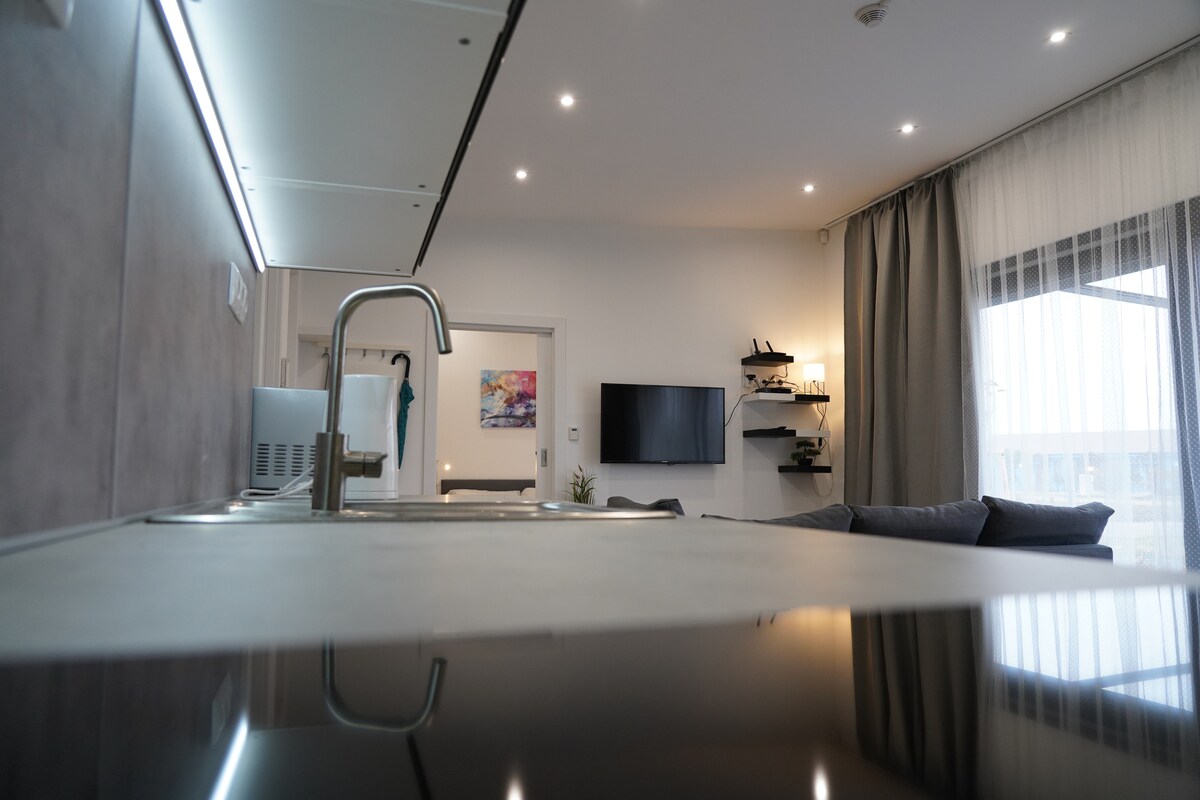 Ce logement unique a son propre style. L'appartement est entièrement meublé et équipé d'une cuisine complète avec un barbecue et un grand réfrigérateur, lave-vaisselle et lave-linge, il est donc également adapté aux séjours plus longs, il y a également un petit sauna pour deux personnes. Un coffre-fort pour les vélos est également disponible dans la cave. L'appartement est climatisé et dispose également d'un accès Internet par fibre optique.