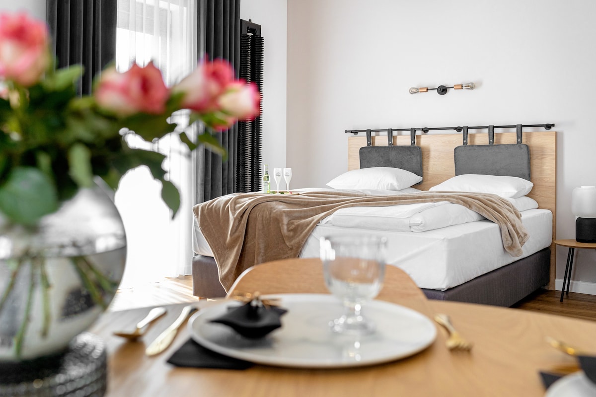 Notre havre artistique au cœur de Zielona Góra, à 5 minutes de la place de l'hôtel de ville, de la promenade et des pubs d'ambiance. Chambre lumineuse, grand salon avec cuisine ouverte, hauts plafonds et balcon plein de soleil. Vinyles, peintures et équipements Hi-Fi uniques créent l'âme du lieu. Proche du club de jazz, des établissements vinicoles, du théâtre et de la philharmonie. Stationnement gratuit. C'est proche de tout.