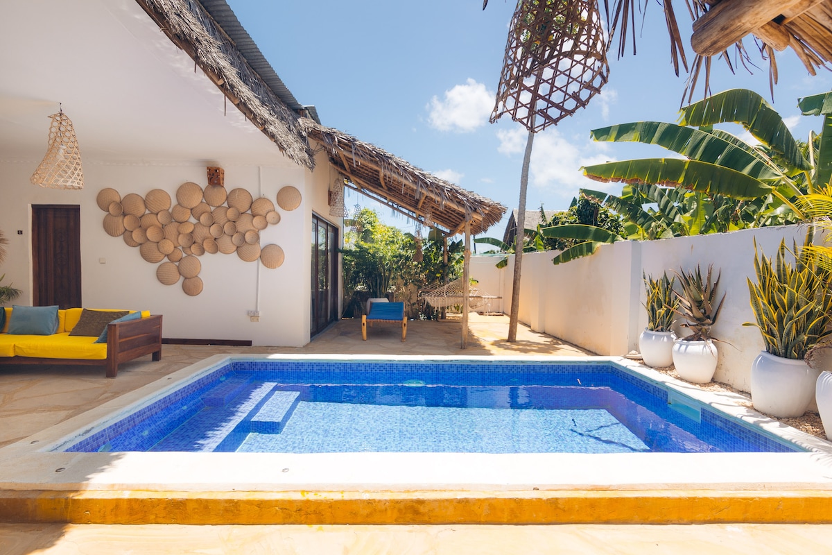 * La villa est privée, elle dispose de sa propre piscine privée et rien n'est partagé* Évadez-vous dans notre retraite unique et élégante inspirée de Bali, nichée au milieu de la beauté à couper le souffle d'East Nungwi. Un endroit loin de la foule, où chaque détail s'harmonise avec la nature. Réveillez-vous à la vue majestueuse du lever du soleil, alors que vous vous retrouvez cocooned dans une végétation luxuriante. Plongez dans notre piscine privée ou détendez-vous simplement au milieu de ce paradis parfait. Venez découvrir la magie de Zanzibar.