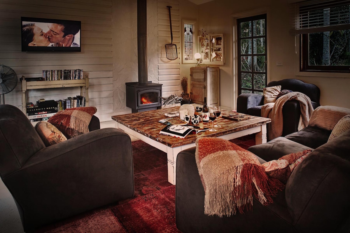 Détendez-vous, déconnectez et relaxez dans la nature. Birdsong est un havre de paix pour l'observation des oiseaux, l'observation de la faune indigène et la randonnée. La cabane est nichée sur une propriété de 100 acres, dans une vallée isolée, entourée de forêt et d'une réserve naturelle adjacente, avec vue sur les collines environnantes. Nous vous invitons à venir profiter d'une pause tranquille en pleine nature, regorgeant d'animaux sauvages indigènes. Asseyez-vous sur la véranda couverte et faites l'expérience de la sérénité ou promenez-vous jusqu'à la rivière cristalline avec trou de baignade.
