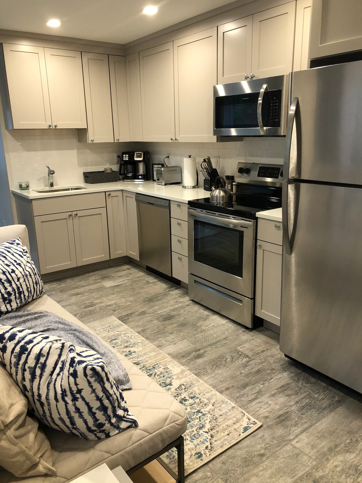 Renovated modern ground floor unit in a two family house in Vineyard Haven. Only a short walk down the hill to the ferry terminal, and Main Street, with plenty of shops and restaurants, a supermarket, movie theatre, the famous Black Dog bakery and restaurant, the Martha's Vineyard museum, the beach and waterfront, the large Veterans Memorial park, and more. Public transportation to the other towns is easily accessible. A car is not necessary as it is with more remote locations.