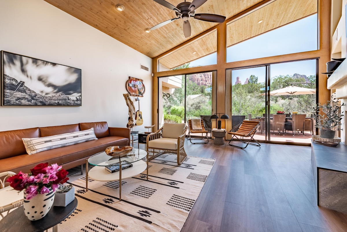Profitez de vues majestueuses sur les célèbres Sedona Red Rocks dans le luxe de votre propre villa privée. À quelques pas de l'emblématique chapelle de la Sainte-Croix, des sentiers de randonnée populaires. La maison présente une esthétique moderne du milieu du siècle, 1 lit KING SIZE, 1 canapé-lit avec 2 salles de bain, 2 salons spacieux, une cuisine, un bureau, un espace repas extérieur avec barbecue. Après une journée dans le désert, à quelques pas, dirigez-vous vers le centre-ville de Sedona, poursuivez d'incroyables galeries d'art et explorez les restaurants locaux ! TPT# 21426328/ 1 800 Sq. Ft.