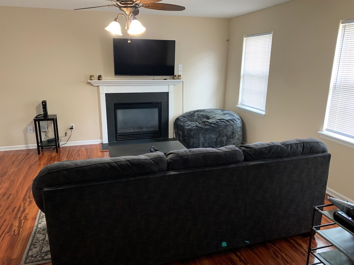 Maison confortable et bien entretenue dans un quartier calme, à seulement 15 minutes du centre-ville de Durham, à 20 minutes de l'aéroport RDU et à 5 minutes de Twin Lakes Park. Beaucoup de lumière naturelle, 2 chambres, 1 loft bureau ouvert/espace flexible avec lit (3 lits au total), 2,5 salles de bain, plan d'étage cuisine-salle à manger-salon ouvert, lave-linge/sèche-linge, garage et beaucoup d'espace de rangement. Internet haut débit, CVC central et beaucoup d'autres caractéristiques parfaites pour des séjours de courte ou longue durée.