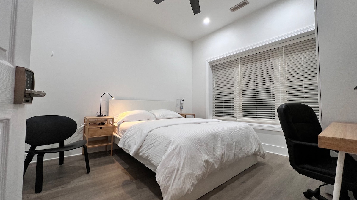 Cuisinez dans une cuisine en acier inoxydable avec des comptoirs en granit, des ustensiles étincelants et un réfrigérateur bien approvisionné. Des accents noirs et gris et des bois sombres viennent contrebalancer une palette de couleurs douces dans cette maison à aire ouverte. Les détails bien pensés comprennent des draps de 800 fils au pouce carré. Une retraite conçue pour évoquer la détente à travers le luxe et les éléments de la terre. Des draps et des peignoirs de bain luxueux, des produits de soin du corps et des cheveux de luxe, associés à un design élégant, créent une retraite de salle de bain spa que vous apprécierez certainement. Cuisine entièrement en granit et en acier inoxydable, avec réfrigérateur à vin, approvisionnée en produits essentiels du matin et en produits de base Bronzeville BNB pour vous faciliter la journée. Détendez-vous ou socialisez dans le salon et la salle à manger ouverts équipés d'un système de divertissement Amazon et d'une connexion Wi-Fi fournissant la météo, les sports, les actualités, les derniers films et oui... parfois... le travail. Retirez-vous dans l'un des trois couchages, chacun avec des draps 100 % coton de 800 fils au pouce carré. Vous trouverez des touches attentionnées de Bronzeville BNB à chaque coin de rue. Profitez-en ! Vous aurez accès à la suite complète, y compris le salon/salle à manger/cuisine ouverts, la salle de bain spa, la chambre avec dressing, le placard du couloir, le vestiaire arrière contenant un lave-linge/sèche-linge, une serpillière/balai, une poubelle et un extincteur. Il y a des patios en béton à l'avant et à l'arrière. La cour arrière, la terrasse principale de la propriété et le garage sont des zones réglementées. La suite est nichée dans le quartier historique de Bronzeville-Hyde Park. Louez un vélo Divvy pour explorer le sentier de loisirs de 18 miles au bord du lac à proximité. Les principales attractions de Chicago sont à quelques minutes en voiture. Le moyen le plus efficace de se déplacer dans la ville est UBER, qui offre un service porte-à-porte vers toutes les principales attractions de Chicago. Réclamez votre cadeau de trajet Uber GRATUIT (jusqu'à 5 $) auprès de l'hôte en vous inscrivant via ce lien : https://www.uber.com/invite/zkyf4 Les locations de vélos Divvy sont un excellent moyen d'explorer le sentier de 18 miles au bord du lac de Chicago. Le Divvy Explorer Pass comprend 24 heures d'accès à vélo, avec des trajets illimités jusqu'à 3 heures chacun pour 15 $/jour. Récupérez et retournez les vélos dans les plus de 575 stations Divvy de Chicago et d'Evanston. Téléchargez l'application Divvy pour connaître l'emplacement des stations et acheter des pass. Votre sécurité est importante. Faites attention et soyez conscient de votre environnement. Dans les grandes villes, il peut toujours arriver quelque chose. Il est conseillé de ne pas marcher la nuit, d'éviter les transports en commun en dehors du centre-ville et d'utiliser les applications de transport de covoiturage pour éviter d'échanger de l'argent.