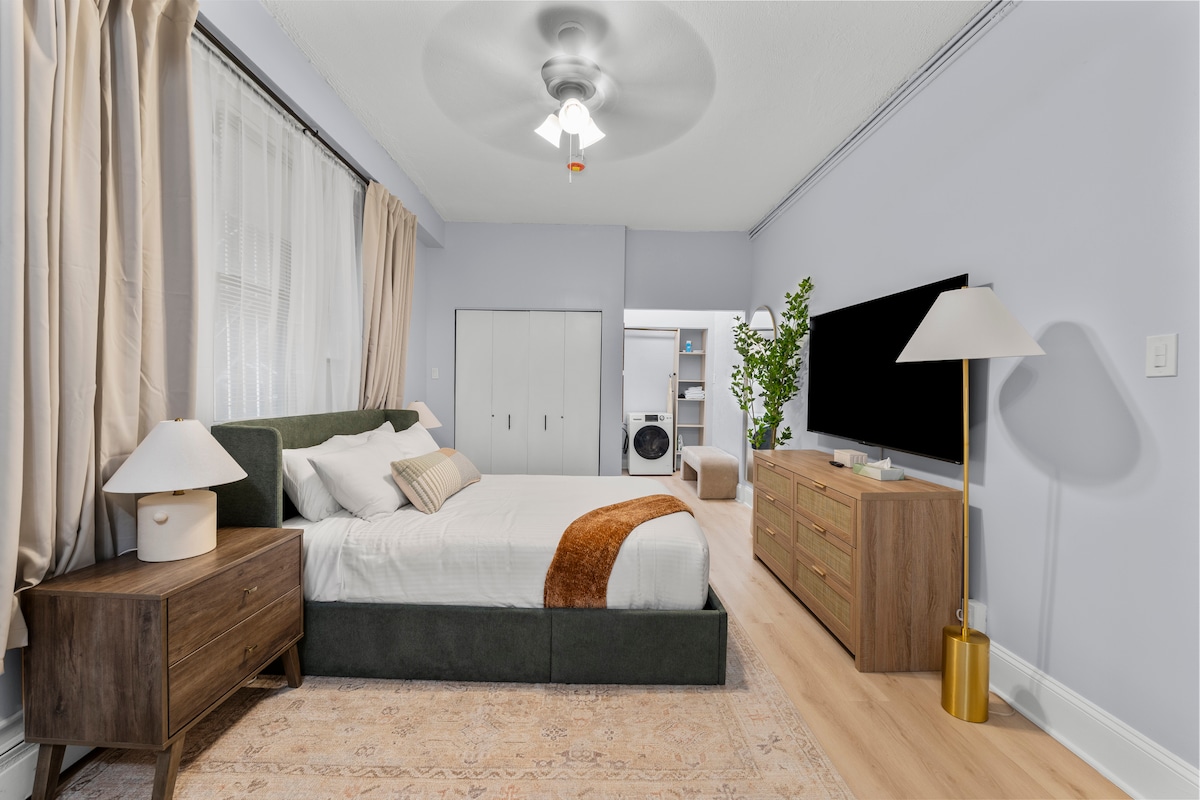 Magnifique appartement de 2 chambres et 2 salles de bain au dernier étage au cœur de Bronzeville ! Avec de hauts plafonds et beaucoup de lumière naturelle. La cuisine entièrement équipée offre tout ce dont vous avez besoin pour cuisiner un délicieux repas, ou vous pouvez profiter de l'une des nombreuses excellentes options de restauration à proximité. 🌊Faites une promenade de 15 minutes jusqu'au bord du lac et à Oakwood Beach. Idéalement situé à proximité de : • Centre-ville de Chicago • Soldier Field et Guaranteed Rate Field • Field Museum et Art Institute • Chinatown, Hyde Park et Pilsen • Et bien plus encore !