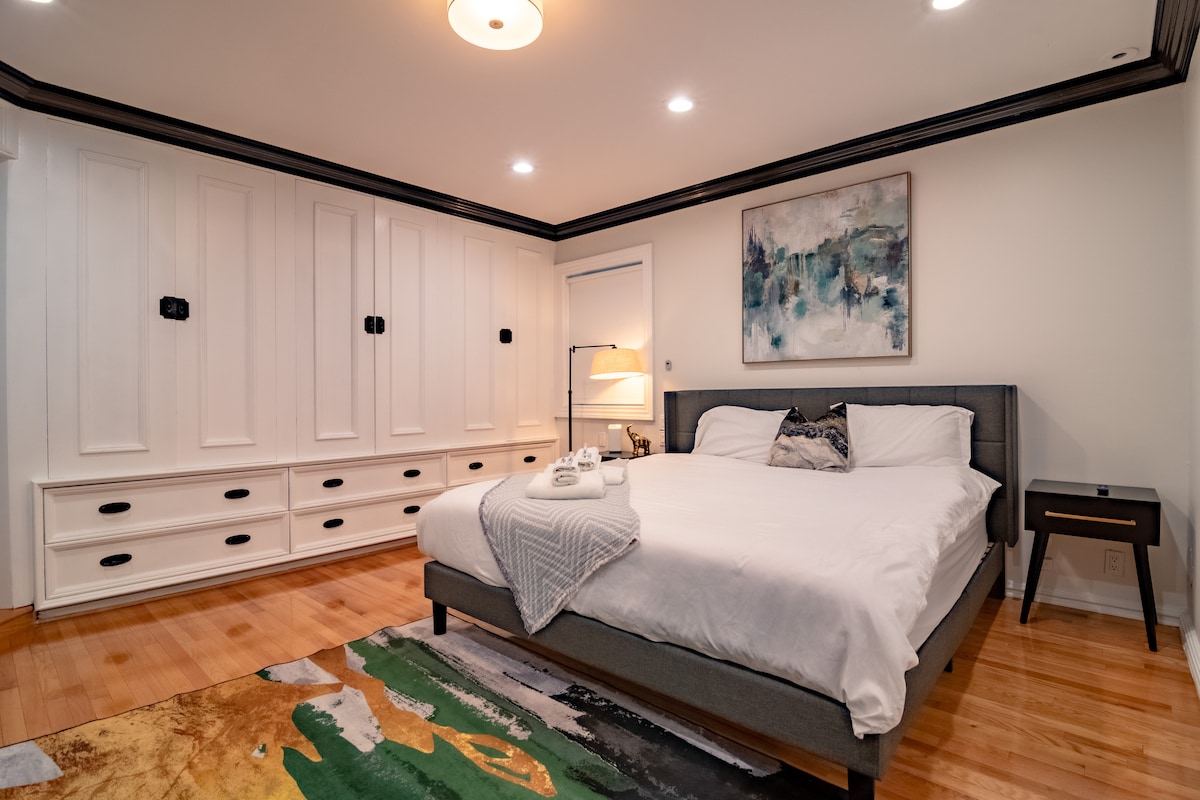 Séjournez dans la Coach House de ce manoir historique historique magnifiquement restauré, à un pâté de maisons des plages du lac Michigan et à proximité de la ville et de la NU. Profitez de tout le carrosse qui est rénové et comprend une grande chambre avec lit king size et bureau, un salon/salle à manger ensoleillé, une salle de bain complète avec baignoire et douche à pieds de griffes et une cuisine avec des équipements. L'espace peut être équipé d'un matelas pneumatique pour un voyageur supplémentaire. Une suite au 3e étage de la maison principale est également disponible.