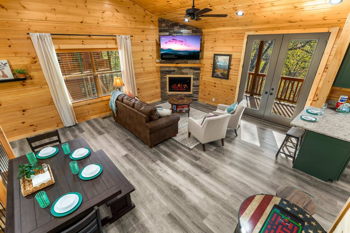 Découvrez pourquoi cette cabane est le top 5 % sur Airbnb ! Magnifique, à 1 mile de la promenade et de l'île ! 2 suites King Master spacieuses pour une nuit reposante. 2 salles de bains privées complètes, canapé-lit, sauna, jacuzzi, salle de jeux et brasero ! BEAUCOUP d'équipements. Vous adorerez cette ouverture de 1 niveau, 3 ensembles de portes-fenêtres donnant sur le balcon privé. Détendez-vous sur la porche avec vue sur la vallée ou profitez du jacuzzi dans la grande cour arrière. L'espace de vie dispose de hauts plafonds et d'une cheminée confortable pour une retraite.