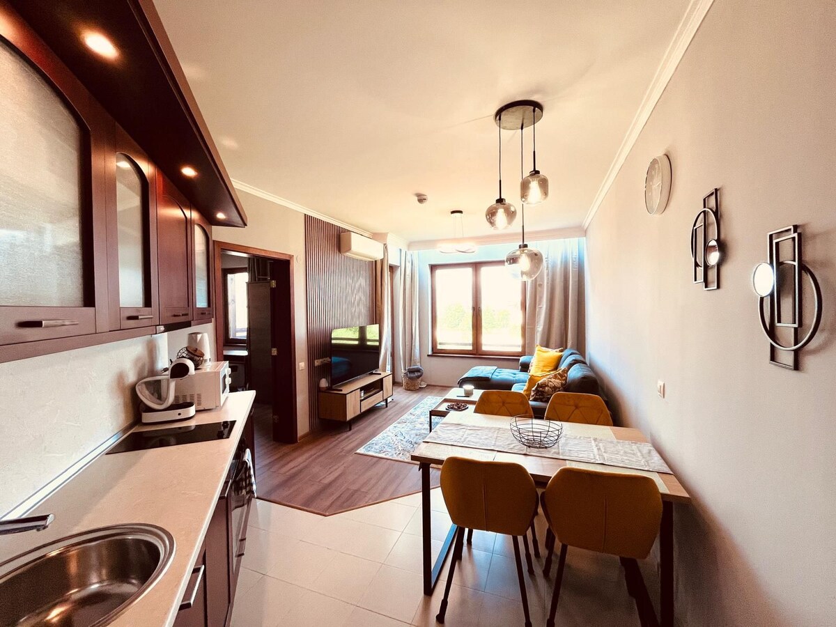 Bienvenue dans notre tout nouvel appartement de luxe à Bansko, niché au milieu de la magnifique chaîne de montagnes de Pirin. Plongez dans une retraite unique inspirée des grottes, ornée de pierres rustiques et de touches de bois chaleureuses. Le lit double promet un confort ultime, tandis que les lumières LED cachées créent une ambiance magique. Découvrez un mélange harmonieux de nature et d'opulence, avec une vue panoramique sur la station de ski de Bansko. Votre escapade en montagne vous attend, où chaque détail respire la tranquillité et l'élégance.