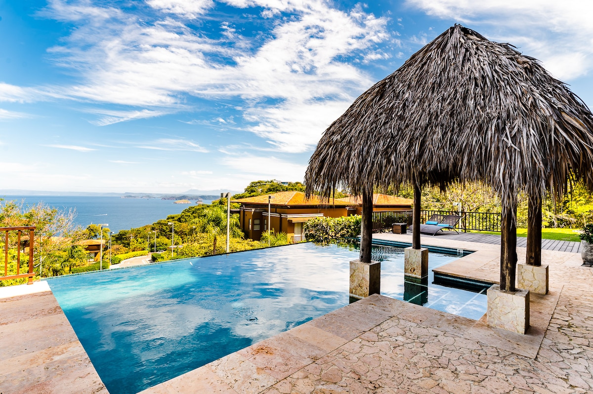 VILLAS DE LUXE PURA VISTA AVEC VUE MAGNIFIQUE SUR L'OCÉAN ! ! Bienvenue à l'élégante Villa Pura Vista ! Cette merveilleuse villa tropicale est située dans la prestigieuse communauté de la Marcela Gate, (garde 24h/24) Une VUE spectaculaire. Maison située en haut d'une colline surplombant plusieurs plages immaculées, les îles Catalina, les lumières nocturnes et la marina Flamingo, la baie de Potrero Beach. Isolé, mais à quelques minutes de belles plages comme Playa Danta, Playa Potrero, Playa Penca Playa Flamingo, Playa Conchal,