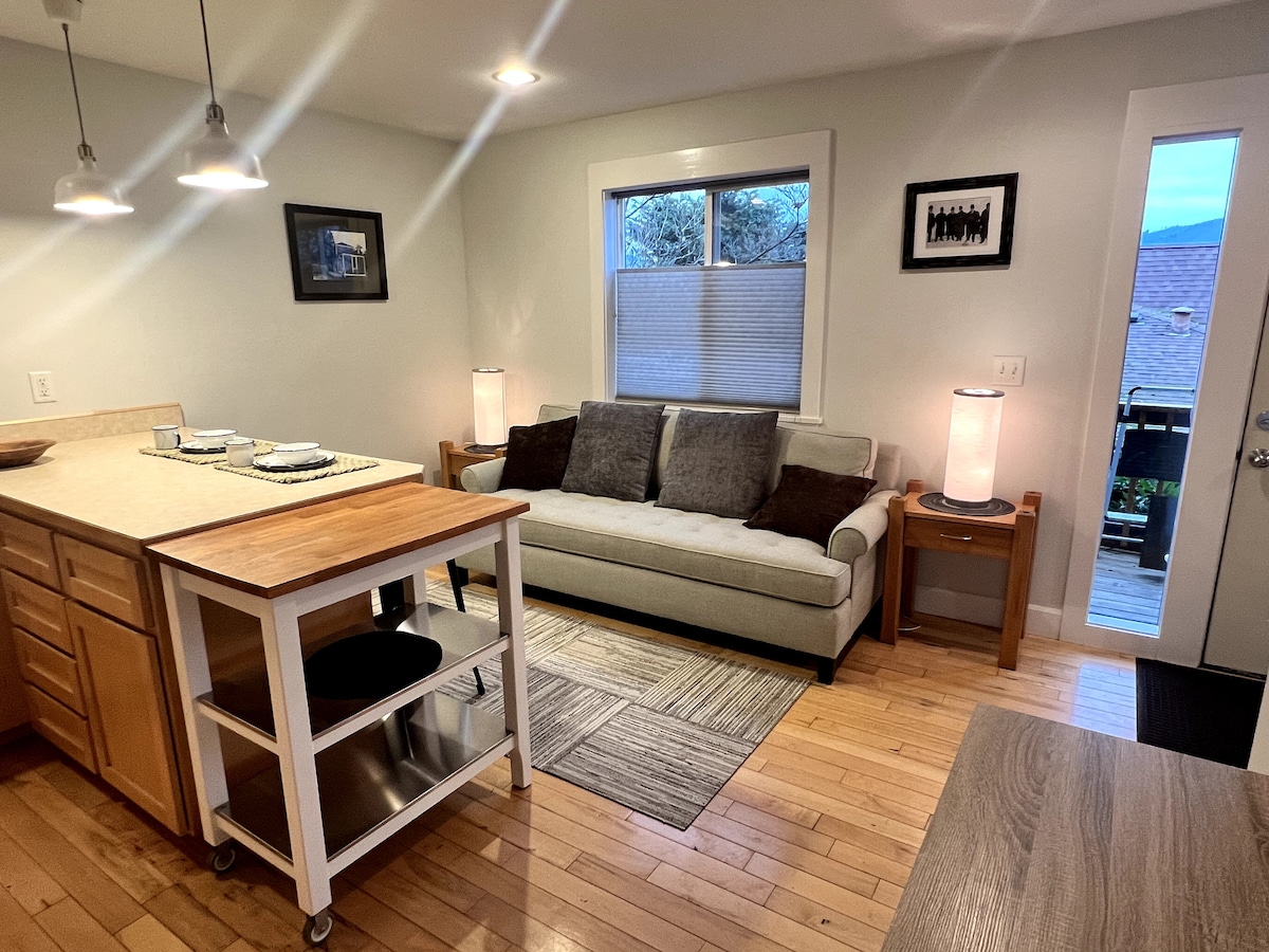Détendez-vous dans cette suite avec lit King Size et entrée privée, à seulement 10–15 minutes à pied des cafés, des boutiques et de l'ambiance locale de Hood River. Magnifiquement décoré pour un séjour confortable et serein, parfait pour les couples, les voyageurs en solo ou les familles avec enfants. Préparez un expresso riche dans votre chambre avec notre machine automatique, profitez d'une connexion Wi-Fi rapide, de collations, d'un tapis de yoga et de jeux. L'accès privé et le stationnement facile facilitent les allées et venues. Idéalement situé pour les aventures de la gorge : caves, randonnée, sports de neige, loisirs fluviaux, vélo et agro-tourisme.