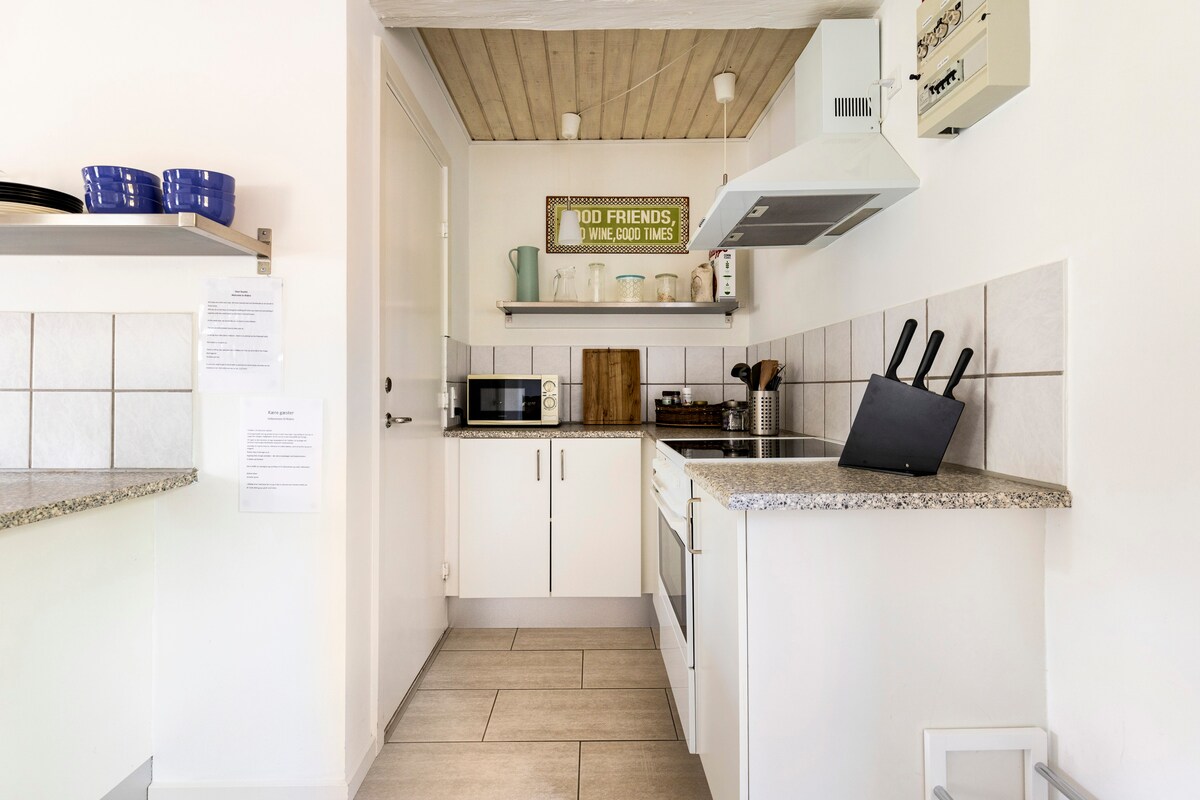 Minimum 2 nuits - minimum 2 nuits. Super emplacement à courte distance du centre ville, avec des options de restauration, des cafés et des musées. Parking juste à la porte ainsi que supermarché, boulangerie et station de réservoir. Il y a une terrasse privée avec salon de jardin - à la fois couvert et pour le soleil, le barbecue et la cheminée. Tout est récemment rénové. Remarque : forfaits DKK 50 DKK,/par personne (composés de linge de lit, de 4 serviettes, de tapis de bain, de torchons, etc.) obligatoire. Le logement ne convient pas aux enfants ou aux personnes à mobilité réduite.