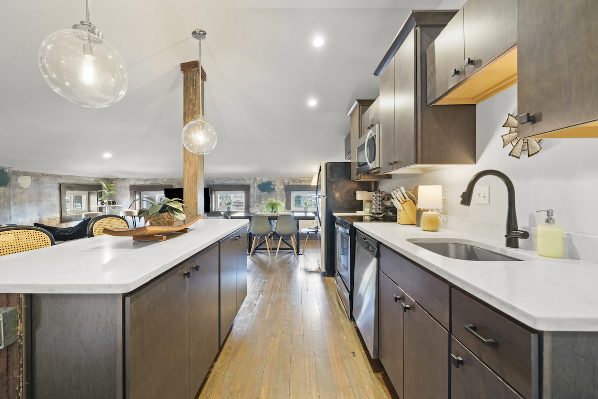 Home of the former Foxbriar Inn, this condo is located inside a beautiful historic building. This space is great for your weekend away or a longer term stay. Exposed brick and high ceilings make it a charming and cozy experience. Enjoy the perks of walking to lots of great restaurants, specialty shopping and boutiques. We are just seconds from a beautiful stroll along the River. Bakery and coffee shop underneath. Enjoy brunch on the weekends or a sweet treat anytime in the week.