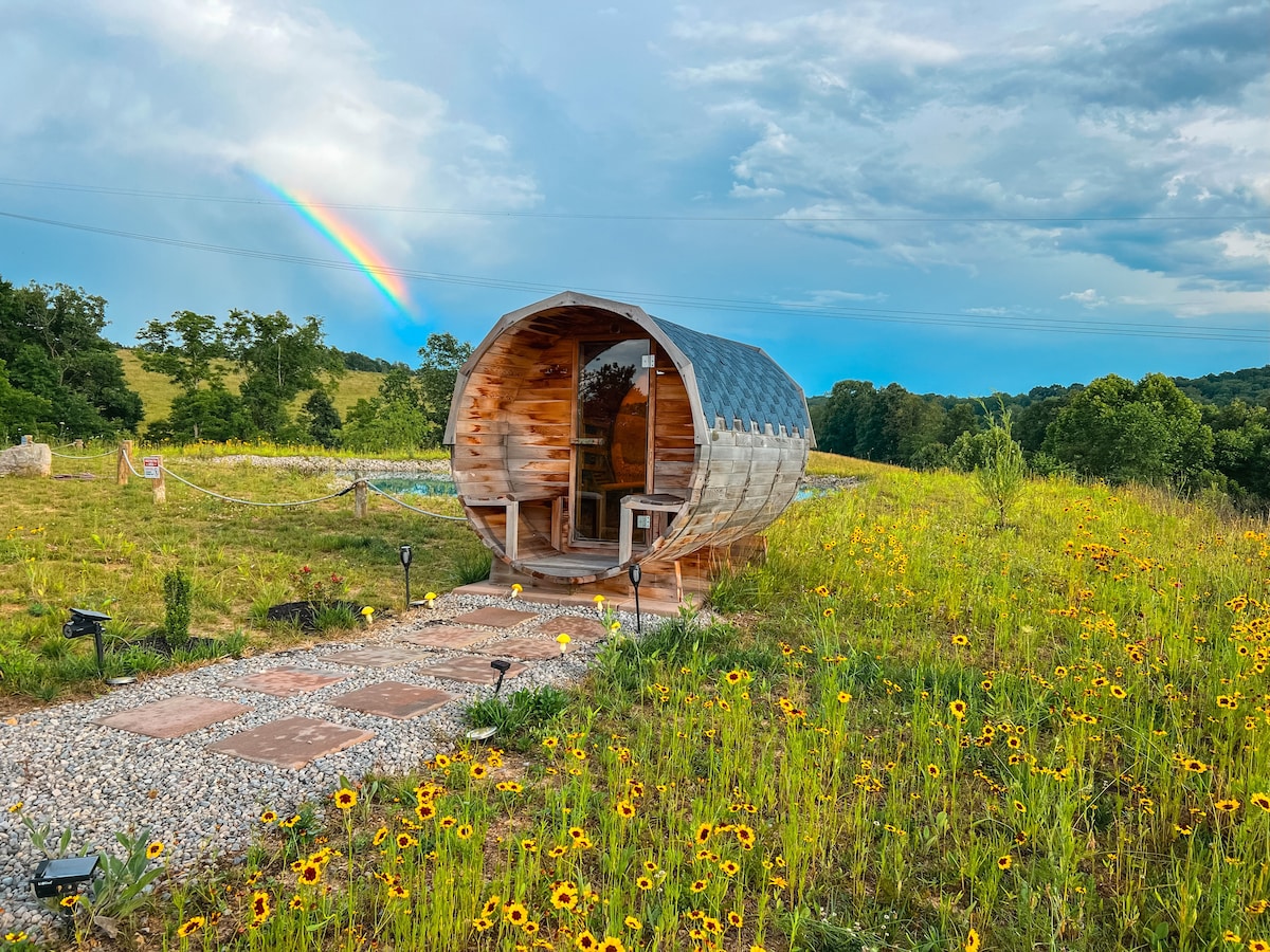 Imaginez... votre propre escapade magique inspirée des contes de fées du hobbit avec vue panoramique. Animaux acceptés à 3 miles du Hocking Hills State Park Ash Cave. Situé sur 11 acres. Sauna sur place, renseignez-vous sur votre séance de sauna gratuite. Lit Queen Size de luxe, finitions uniques, porte de grange, cheminée électrique et kitchenette vintage entièrement équipée. Cafetière. Votre propre jacuzzi. Barbecue et foyer extérieurs. Tout le luxe et le charme fantaisiste. Charmant vignoble à proximité. Courte distance en voiture de Cedar Falls, Old Man's Cave.