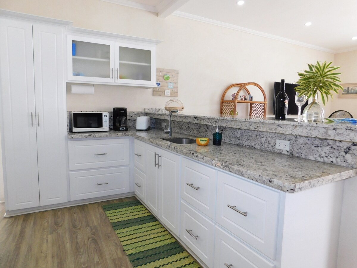 Maison spacieuse et entièrement climatisée de 2 chambres/2 salles de bain idéalement située à Douvres, à deux pas du complexe Sandals et de la populaire plage de Douvres. Il y a un studio attenant qui peut être loué séparément ou ensemble avec la maison. Tous les logements sont neufs, et la décoration est moderne et tropicale. Il y a un parking disponible et il y a un grand patio et un jardin ombragé à l'arrière. Vous n'êtes qu'à quelques pas de plusieurs bars, restaurants, épiceries et lignes de bus.