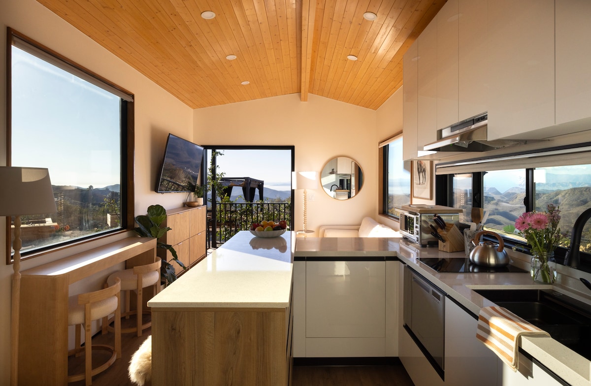Si vous êtes à la recherche de l'escapade ultime, vous avez trouvé votre endroit spécial. Nichée dans un canyon paisible juste à l'ouest du centre-ville d'Ojai, notre cabane d'une chambre allie nature et luxe. Détendez-vous en admirant la vue imprenable sur les montagnes environnantes et le bassin fluvial, et détendez-vous dans une cabane moderne sur mesure qui offre tout ce dont vous avez besoin. MISE À JOUR JANVIER 2025 : nous avons installé un nouveau système Internet Starlink dans le logement, assurant un Wi-Fi haut débit fiable et ininterrompu.