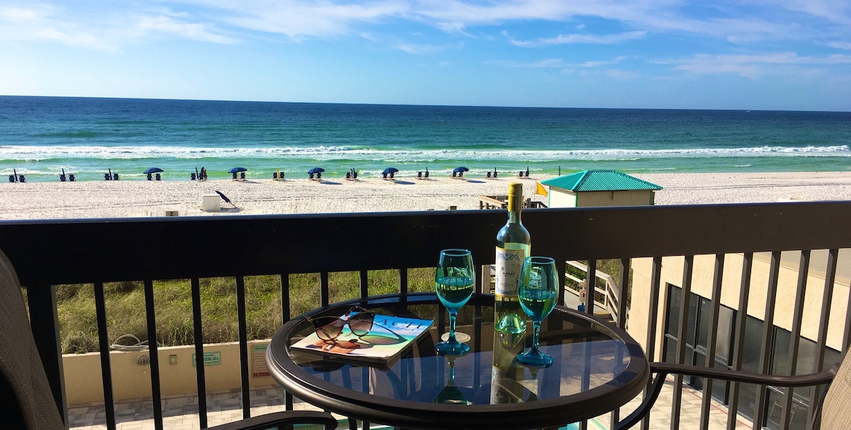 Venez profiter de cet appartement en bord de mer. Vous adorerez cet endroit, situé directement sur la plage, avec de belles vues imprenables sur le golfe. Un condo 2 chambres/2 salles de bain très propre et confortable avec les lits Heavenly de Westin, pour que vous puissiez dormir divinement bien. Une bonne nuit de sommeil est tout aussi importante que de se réveiller avec des vues captivantes pour une relaxation optimale pendant votre séjour. Profitez du lever du soleil avec une tasse de café Starbucks ou Nespresso gratuite dans notre cuisine entièrement équipée. Venez découvrir la Côte d'émeraude.