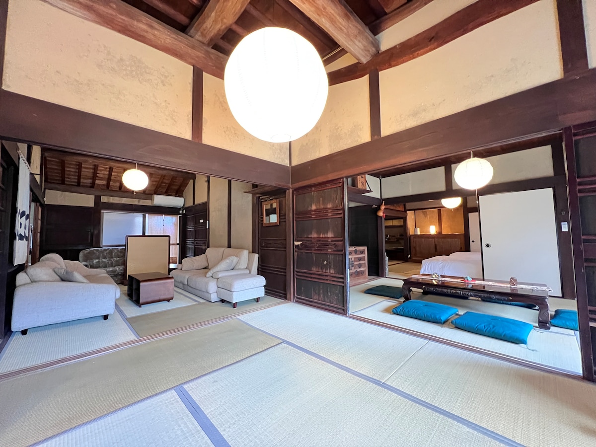 Située à 30 minutes du centre de la préfecture de☆☆ Kagawa, il y a une ville tranquille entourée par la mer et les montagnes.Il est également facile d'accéder aux destinations touristiques de la préfecture.Dans un tel endroit, il y a une auberge, Kinoko. Nous avons rénové une maison traditionnelle☆ construite il y a 86 ans, et c'est un établissement où vous pourrez découvrir la vie du vieux Japon. L'espace cuisine ★de type café dispose également d'une table et d'un comptoir de bar où vous pouvez cuisiner sur une plaque de fer Le riz cuit dans une★ marmite, les boulettes de riz et le café préparé avec de l'eau bouillie sont les meilleurs. Le bain Goemon, qui vous réchauffe jusqu'au★ cœur, est quelque chose que vous devriez essayer au moins une fois La partie la ★plus agréable est de manger autour du foyer.Dégustez des casseroles, des plats grillés et plus encore sur la cheminée !(Réservation facultative obligatoire) De la terrasse dans le★ jardin, vous pouvez lentement sentir le temps en regardant le ciel étoilé. Toutes les★ installations du bâtiment sont neuves, donc l'hygiène est également prise en compte. Vous pouvez également faire un barbecue dans la★ cour, mais il y a une plage privée appartenant au propriétaire à environ 2 km.Soyez guéri par la plage et la forêt où vous pourrez profiter du son calme des vagues que personne n'est dérangé. Profitez de la★ meilleure [expérience traditionnelle japonaise] !