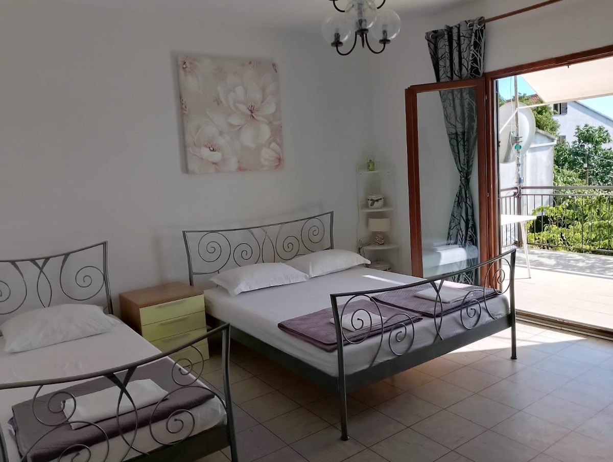 Kuća sa apartmanom nalazi se u mirnom predjelu. Udoban apartman sa 2 spavaće sobe i 2 kupatila sa 2 WC, dnevnim boravkom i posebnom kuhinjom i vrtnom terasom i parkiranjem u dvorištu. Sve prostorije klimatizirane. Na raspolaganju roštilj i vrtni tuš. Idealan za goste koji žele mir i užitak u hladovini vrtne terase bez drugih gostiju. . Domaćini žive u kući sa posebnim ulazom i raspoloživi su za pomoć. Objekt se nalazi do 10 minuta od plaže gdje su brojni sadržaji.Pristup plaži iz dvije ulice.