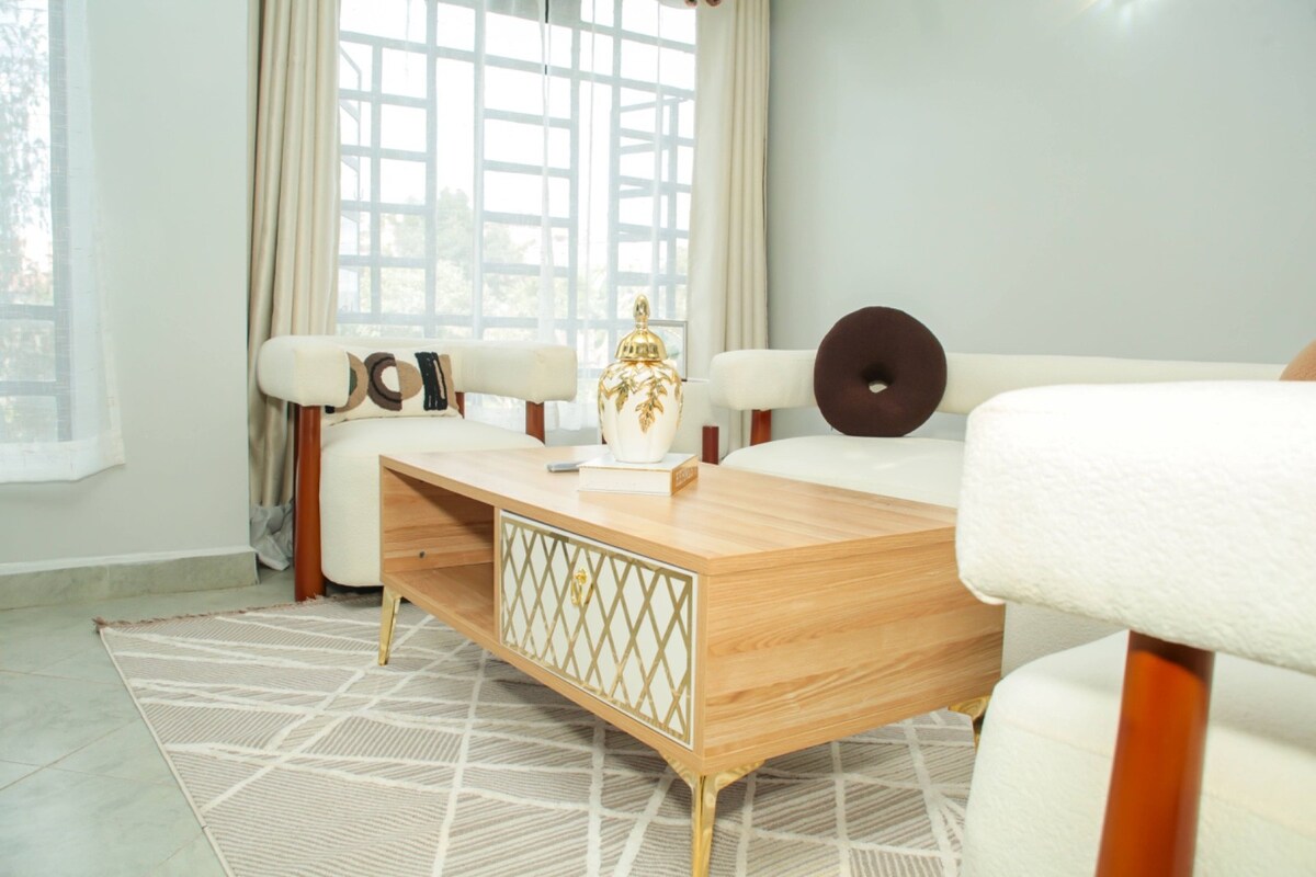 Profitez d'une expérience élégante dans ce logement central. Un appartement serein et propre d'une chambre à Kabachia/Section 58 Nakuru. À 2 minutes en voiture de 7D et de l'espace à côté. Design élégant et minimaliste avec une balançoire hamac. Près des hôtels, de Kiabanda, de la route goudronnée et des moyens de transport.
