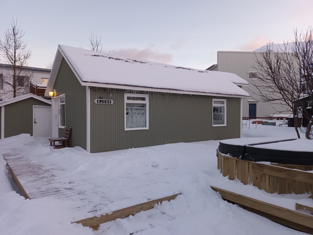 Le chalet est situé au fond du fjord Ólafsfjörður, dans les montagnes. Il dispose de deux chambres, d'un salon et d'un jacuzzi géothermique privé dans un jardin intérieur, qui peut être ouvert sur la terrasse. Le chalet est bien équipé (cuisine et lave-linge entièrement équipés), un nouveau WIFI à disposition des voyageurs, et dispose de nouveaux matelas de qualité composés de linge de maison confortable, de serviettes douces et de couvertures chaudes. La région est extrêmement paisible. Dans la cour arrière, il y a un terrain de football chauffé et une aire de jeux pour les enfants.