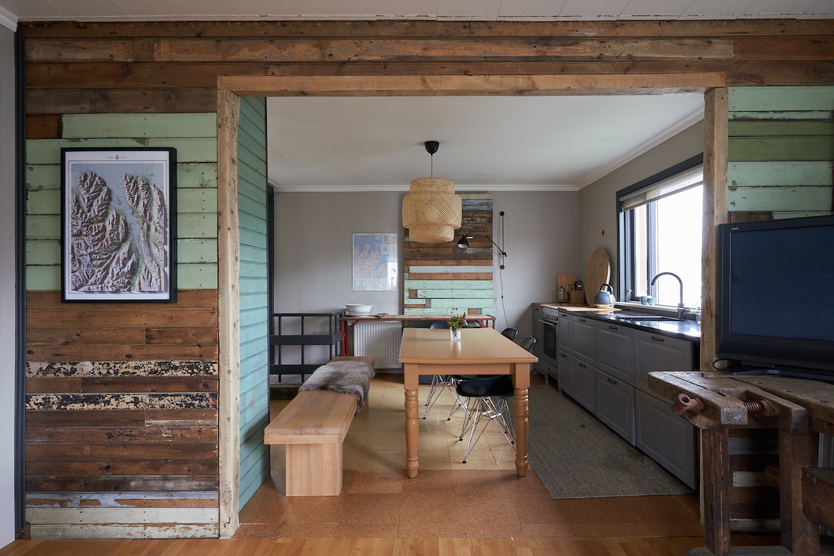 « Smiðjan » la Forge a été restaurée avec amour en mettant l'accent sur l'esthétique originale et le confort. Il est situé en bordure d'une petite zone industrielle où vous pouvez profiter d'une intimité absolue et ne pas vous soucier des voisins. Les grandes fenêtres du grenier offrent une plate-forme parfaite pour admirer les aurores boréales et des vues imprenables. Smiðjan est une maison vieille de près de 100 ans sur les rives du petit village de pêcheurs de Dalvík, au nord, avec vue sur des montagnes et des vallées spectaculaires où la randonnée est à votre porte.