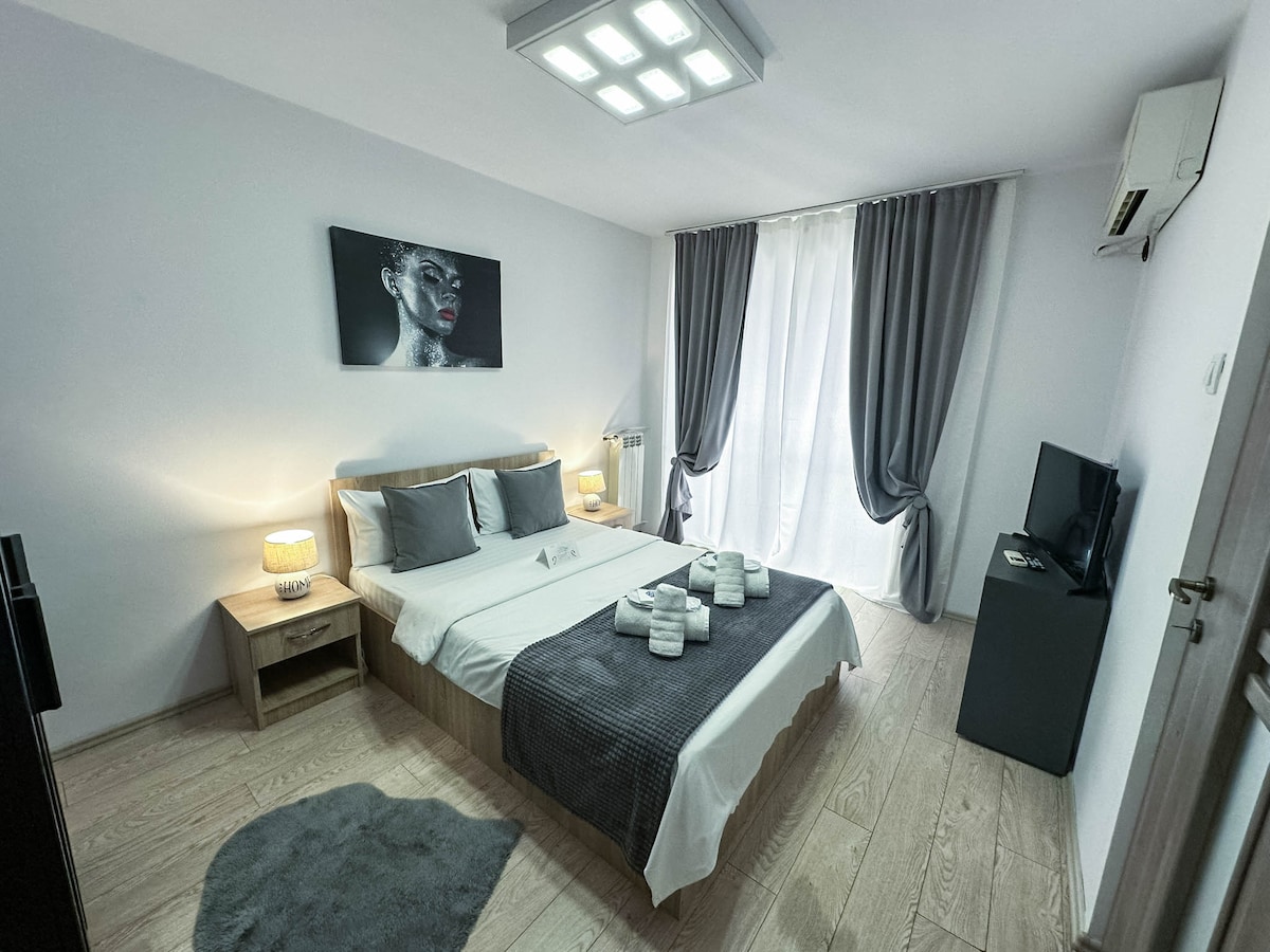 - Emplacement privilégié : idéalement situé avec accès facile aux principales attractions de Bucarest, mais niché dans un quartier calme pour des nuits reposantes. - Confort haut de gamme : profitez d'un lit moelleux et de qualité supérieure pour un sommeil réparateur et d'une télévision connectée QLED 4K 4K pour votre divertissement. - Cuisine entièrement équipée. - Propreté garantie : personnel de nettoyage dédié -> propreté quotidienne. - Parking gratuit sur notre parking (vidéosurveillance).
