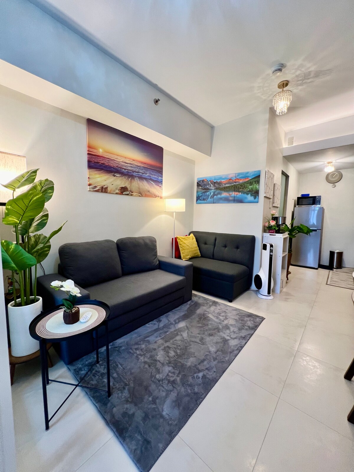Notre logement est un appartement 1 chambre entièrement meublé situé à Sundance Residences en plein centre de la ville de Cebu. Cet endroit chaleureux et confortable accueille et rend le séjour des voyageurs inoubliable et confortable. Notre logement est meublé avec les éléments de base pour un séjour agréable comme un chauffe-eau de douche, un réfrigérateur, une cuisinière à induction et une bouilloire, des ustensiles de cuisine et de cuisson, un cuiseur à riz, un four à micro-ondes, un distributeur d'eau avec 1 gallon de recharge gratuite. Nous fournissons également une connexion Wi-Fi illimitée avec 85 chaînes de télévision Cignal.