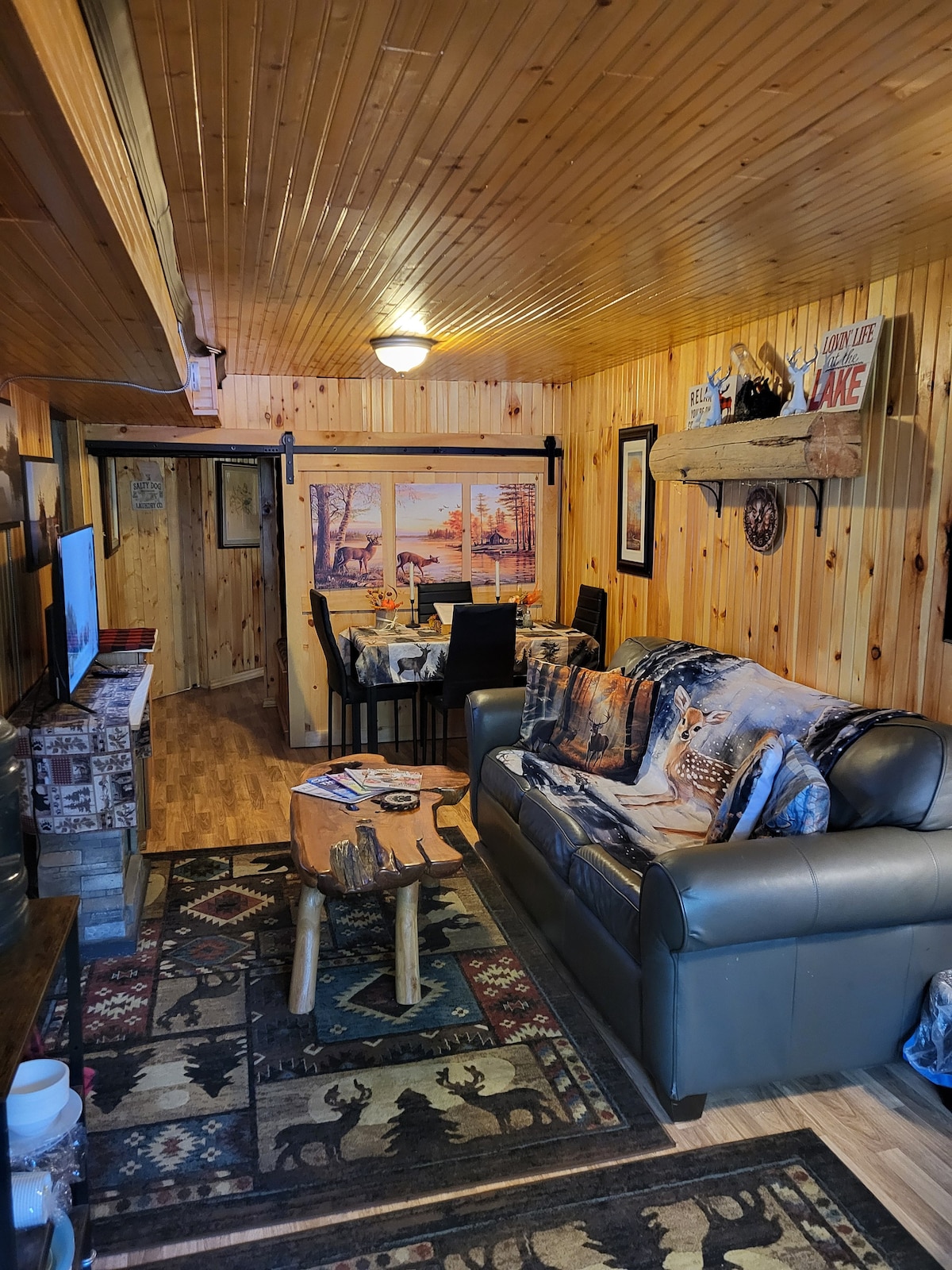 Bienvenue à La Khabine ! Ce chalet confortable et moderne est équipé de tout ce dont vous avez besoin pour vous détendre et vous connecter avec la nature. Dégustez un verre de vin au son d'un feu crépitant dans la cheminée à bois. Admirez la vue sur la forêt à travers les baies vitrées environnantes. Détendez-vous dans le sauna extérieur privé en baril de cèdre. Les produits de soins naturels, le bois de chauffage, le savon à linge et le Wi-Fi haut débit sont tous gratuits. Nous espérons que vous aimerez notre petite cabane de fenêtres autant que nous :)