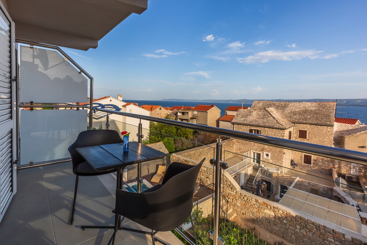 Suite pour couples dans le centre de Bol avec loggia et vue sur la mer