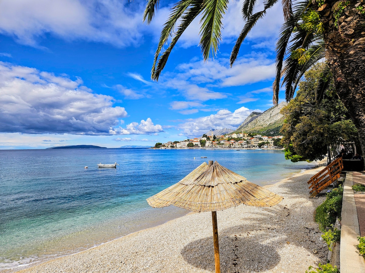 Bonjour ! Nous avons un bel appartement avec vue sur la mer et une grande terrasse à Gradac, en Dalmatie. À 40 km de Makarska au sud, à 10 km des beaux lacs Baćina où il est possible d'organiser des excursions en bateau ou du paddle surf. L'appartement est à 3-4 min. de la mer à pied, avec un parking sécurisé, Internet gratuit... Belle plage, mer propre, bon hébergement et bon prix. Bienvenue !!